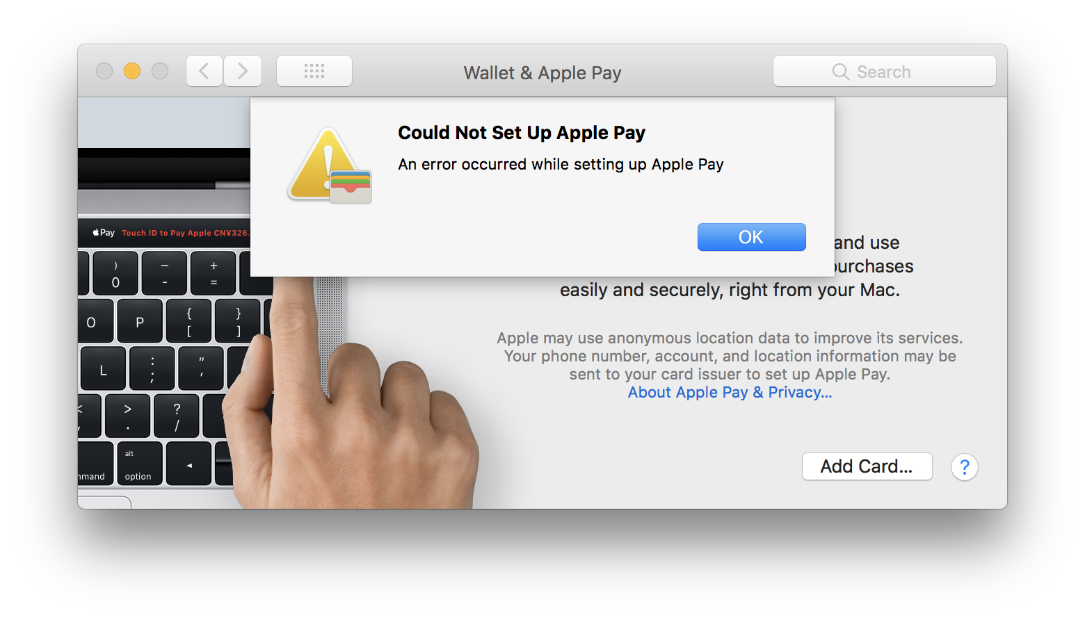Follow the steps on the. The most common way to break Apple Pay on your Mac is to disable automatic updates in the Software Update section of System Preferences. This makes sense because how would you otherwise use the Touch ID sensor.